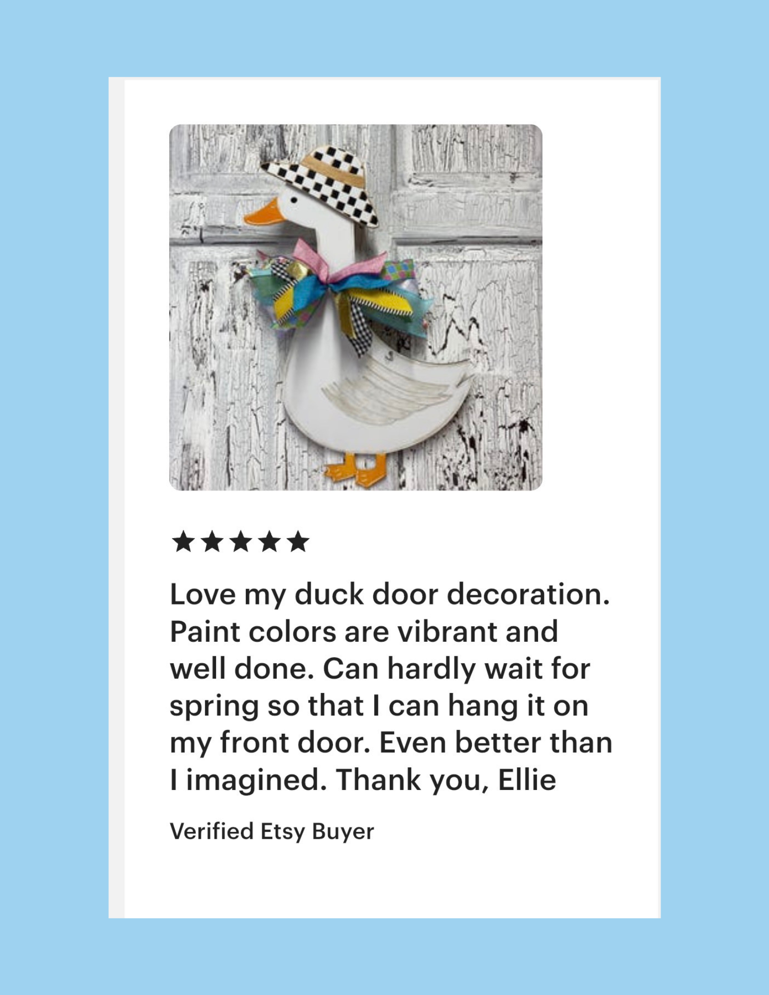 No time to paint your own? Let us create a beautiful finished door hanger for your home or as a gift