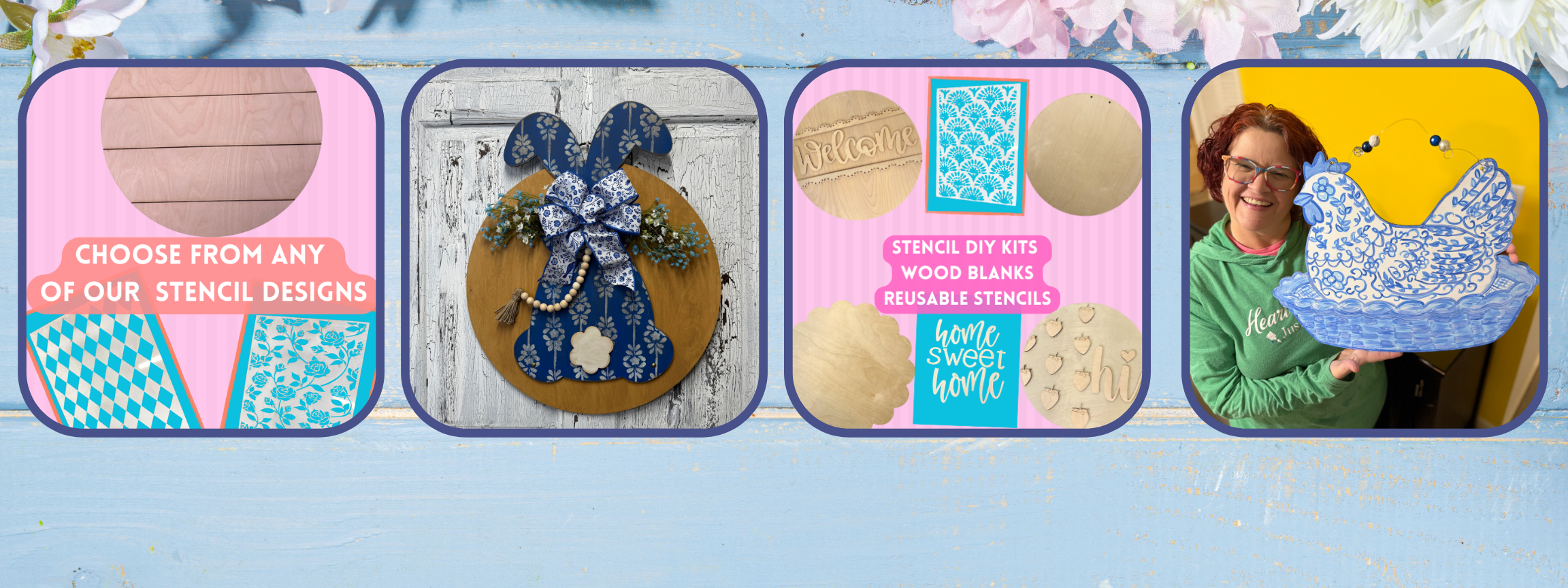 Create beautiful door hangers, signs, and home decor with our premium birch wood blanks and reusable stencil kits