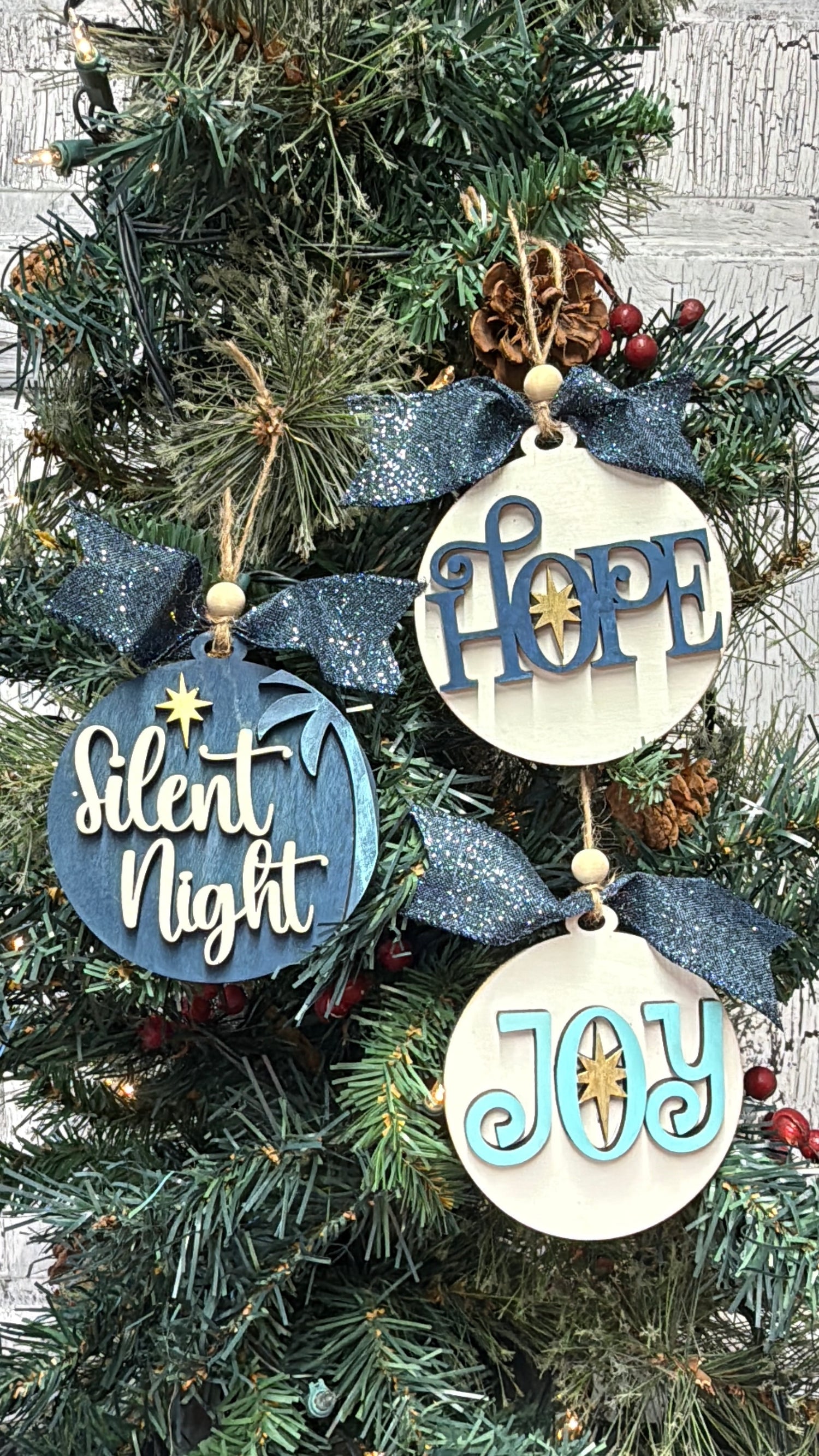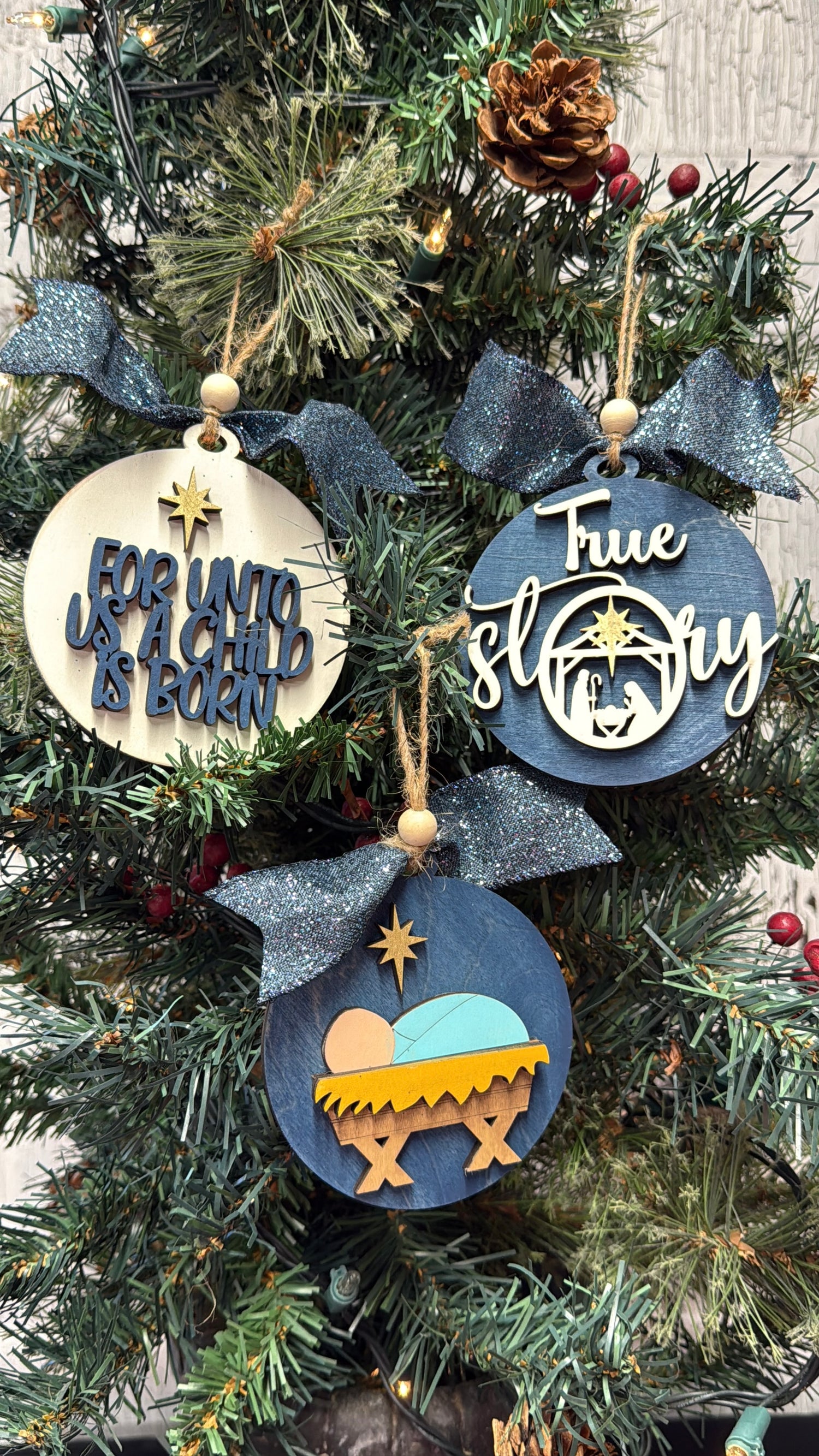 Painters Choice means you get to choose which of the designs you would love to make and we will take care of the rest. Ornaments will be in sets of 3 or you can choose the Isaiah Scripture Christmas Tree shelf sitter and / or the Nativity Journey Tree