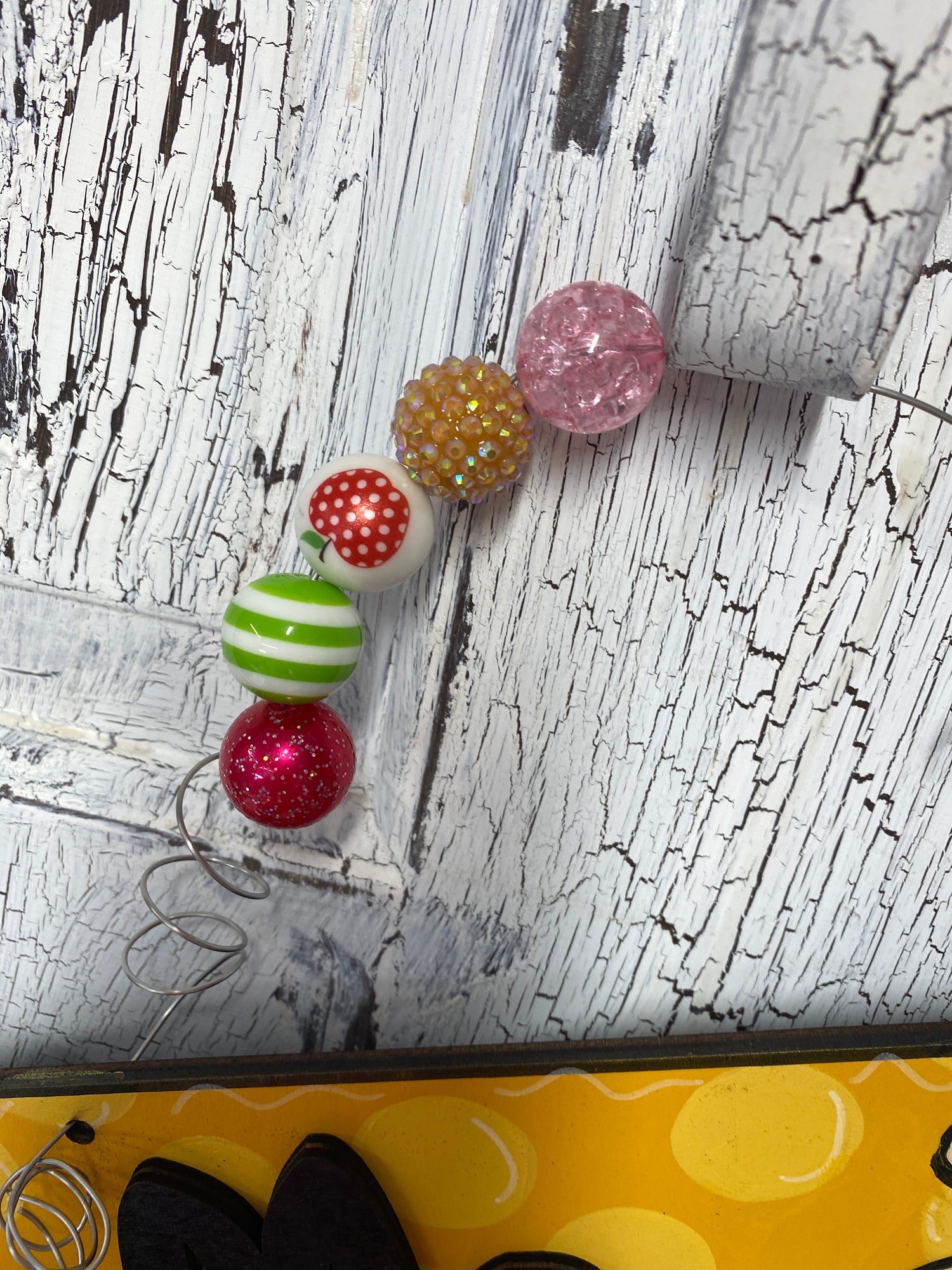 Includes decorative wire hanger with fun chunky beads