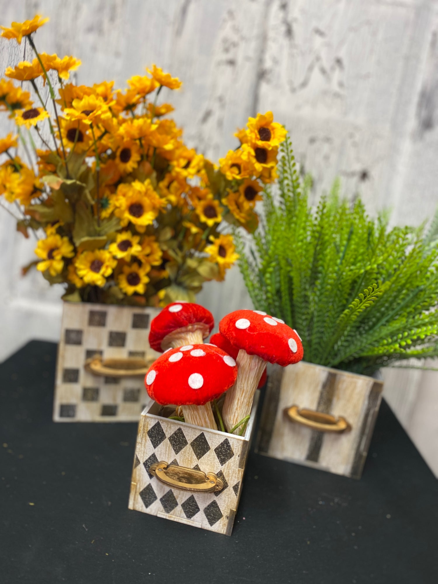 Planter boxes for faux greenery, succulents, herbs, or seasonal floral arrangements (not recommended to use live plants that will require watering)