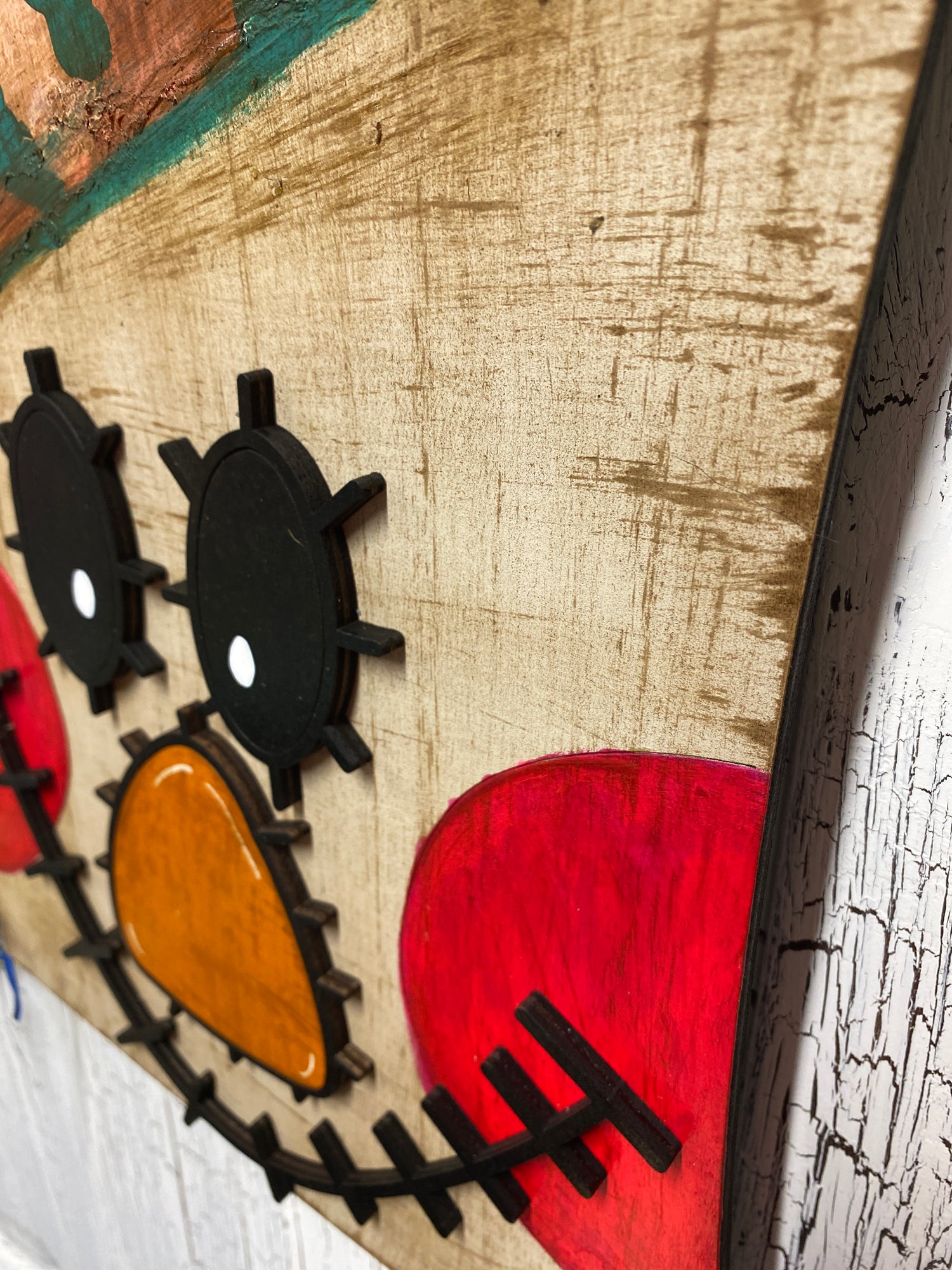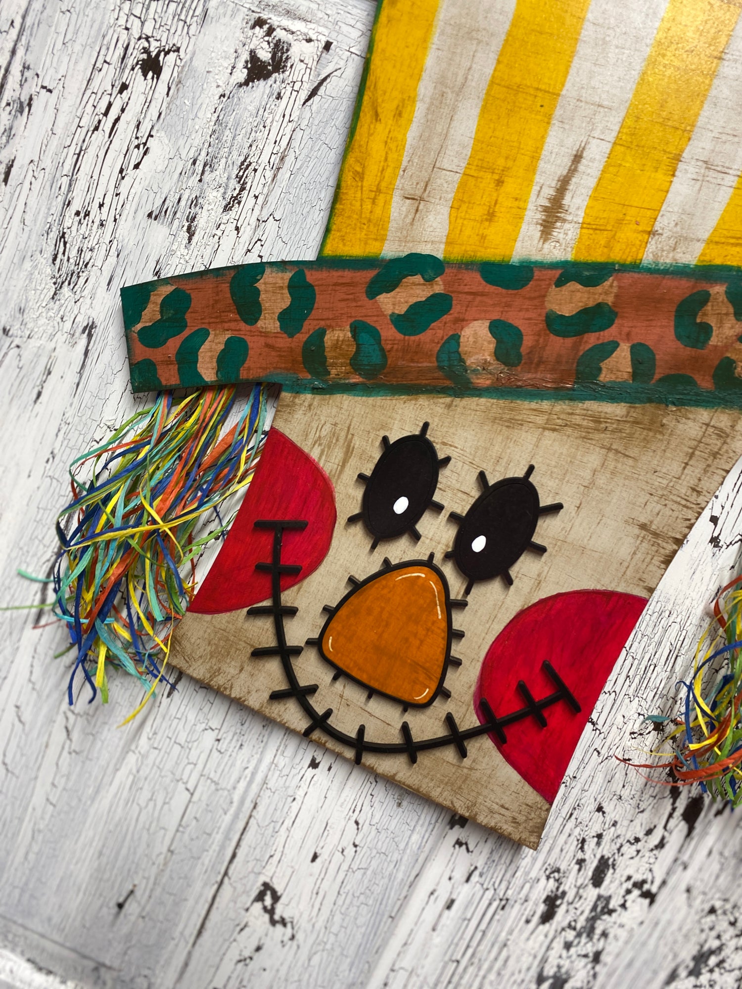 Whimsical Scarecrow Door Hanger – Hand Painted Rustic Fall Decor