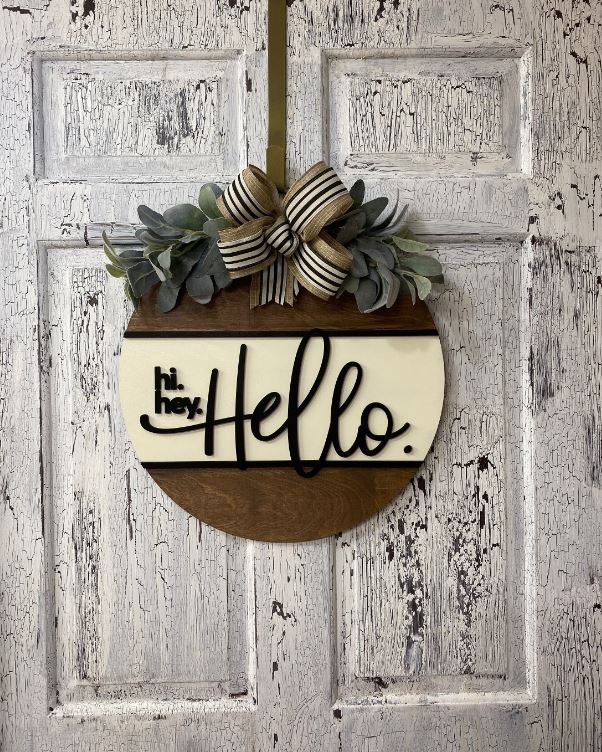 Wooden Front Door Hanger, Hi Hey Hello Wreath, Housewarming Gift for New Homeowners